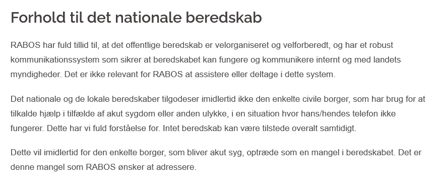 som RABOS kunne byde ind med, for at hjælpe Beredskabet med at lukke dette hul.