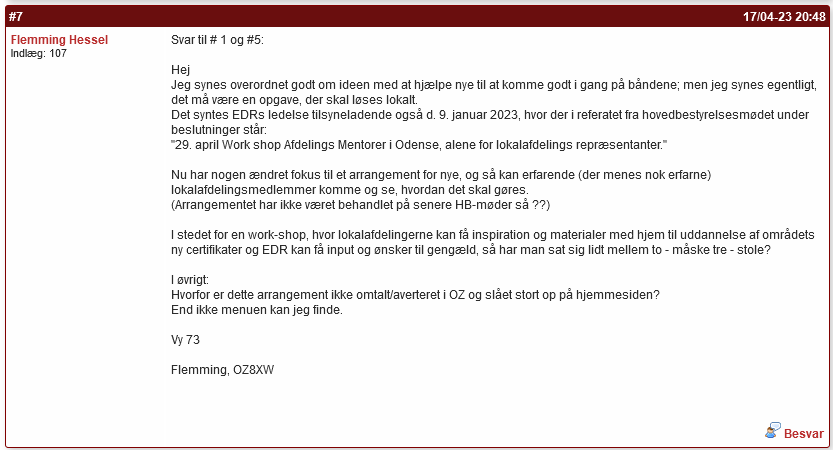 skrive OZ8XW i indlæg #7 bl. a således: