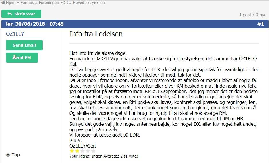 Nu er EDR jo ikke kendt for have føretrøjen på med info til medlemmerne.