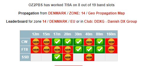 Stort tillykke med TI9A. Ligeså med de mange gaflede entities. Selv er jeg kun oppe på 311 entities heraf er, inkl. LOTW samt qsl kort, indtil videre 252 af disse bekræftede. Det koster "en bondegård eller 2", med postvæsenet at sende/modtage qsl kort inkl. SAE og 2 eller 3 USD for retursending. Jeg er glad for at også du nu benytter den af mig længe benyttede term: "At gafle". Ligeså ser jeg til min glæde at du på et forum også benytter et nickname der minder om det jeg selv benytter. Jeg kan vel med en vis ret give udtryk for tilfredshed dermed. At jeg naturligvis er glad og en lille smule stolt over de mange entities jeg vha. 100 watt og dipol har gaflet, flertallet af disse gaflede entities er endda gaflet vha. en allerede dengang (fra november 2009 til september 2017), mere end 30 år gammel DRAKE TR7 hvor selektiviteten ikke kunne blive smallere end 300 hertz.Nå 100 watt er 100 watt, det vigtigste er vel modtageren, antennen og oplyser flere gode danske DX´ere, operatørens egenskaber med vægt på dennes ører, det siger sig selv. Til slut vil jeg gerne oplyse at jeg blev ret oprørt da en af mig igennem 55 år kendt danske DX (CW) mand, offentligt gav udtryk for at: Nybegyndere gafler DX på de høje bånd, de dygtige gafler DX på de lave bånd. En sådan bemærkning er ikke alene forkert, den er også arrogant. Det må være op til den enkeltes muligheder for opsætning af antenne(r) hhv. den enkeltes fascination på hvilket bånd man boltrer sig. Samme gælder brugen af FT8 hhv. enhver form for DIGI mode.. Også her gælder det vel at den enkelte benytter den mode der matcher egen interesse. Til slut blot følgende: Jeg synes det er beskæmmende når man i en pile up, ganske ofte hører at mange, trods DX stationen efterspørger dele af et kaldesignal, f. eks. DL1 eller lign. alligevel hører mange der oplyser deres, ikke efterspurgte kaldesignal. Mon det er muligt at de enkelte nationale radioamatørforeninger, så som ARRL, RSGB, EDR med flere, kan bringe dette uvæsen op på et for radioamatører internationale møder? Ifald flere udviser hamspirit ville mange flere opnå qso med et ønsket entity. At mange benytter den ret så store, nu om stunder, tilladte effekt er forståeligt. Jeg kan overordnet set ikke lade være med at tænke på den tekst der ses ved indgangen på et tjenested jeg havde for mange år siden. Det var på dette jeg kom på kursus i modtagelse af CW i høj hastighed, på det dokument jeg efterfølgende modtog står at jeg fejlfrit, på en skrivemaskine (det var dengang), kan modtage 200 tegn/min = 40 ord/min. På en sten ved indgangen ses , med bronzebogstaver, påført: Teknokrati som menneskets herre - er et fremskridt til det værre. Teksten/bogstaverne var en gave fra daværende personale i anledning af indvielsen af tjenestestedet (i 1955). Teksten er bestemt eviggyldig og helt korrekt, dette både for proff. radiotelegrafister, men bestemt også for aktive radioamatører.