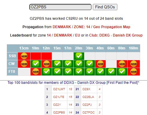 Slutresultatet blev 14 slot fordelt på 3 New Band ( 30, 40 & 80M ) og 9 New Bandmode (12 --> 40M DIGI, samt 80M DIGI + 10 & 30M CW ) Øvrige slot var kørt tidligere .