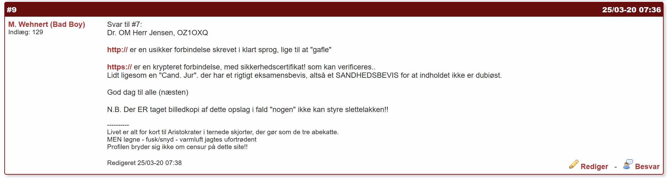 "CW Kejseren" stillede spørgsmål om forskellen på http og https og modtog dette sobre svar, som blev fanget i en "RAID" fejl på BG :lol: