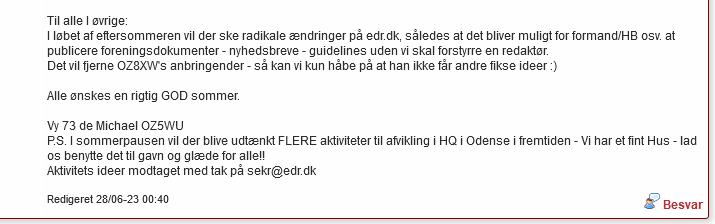 Gu ved om slettefranz har lånt teksten af oz8xw fra den tid, hvor han prioriterede sin dagsorden på foreningens forum og smed andre væk.