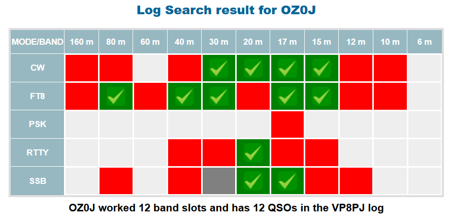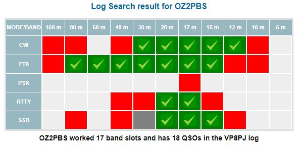 Min høst på VP8PJ. Kun 20M RTTY mangler at blive bekræftet på LoTW, men den kommer nok.