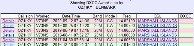 V73NS har ofte været at finde på 20 meter CW om morgenen, og op af formiddagen.
