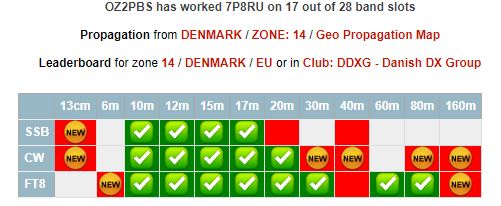 7P8RU, Russian DXpedition Team er gået QRT og det gav lidt nyt i loggen. Det blev til 17 ud af 28 slots og ét New Band ( 60M ) samt 4 New Bandmode. Samlet blev det #3 i OZ og # 2 i DDXG.