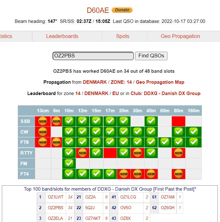 Her blev det til 34 SLOT heraf 2 New Band ( 60 + 160M ) og 3 New MODE. Der herskede en del tvivl om aktiviteten på 60M var legal, men de må åbenbart have fået tilladelsen under opholdet, og tak for det.