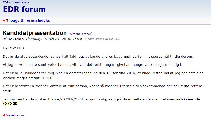 Kommer OZ1OXQ med et indlæg på et andet forum, så kan man være næsten sikker på at kunne læse jeres som oftest nedladende eller ondskabsfulde kommentarer her på RDE forum.