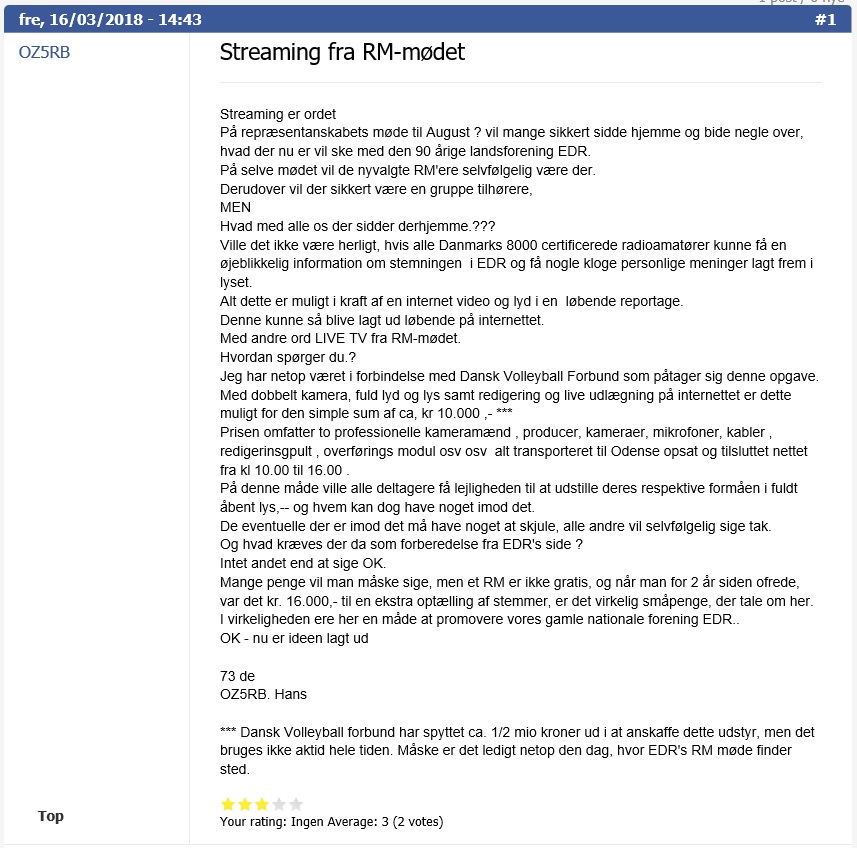 Den første er afklaringen af, om det skal ud til offentligheden eller holdes internt blandt medlemmerne af EDR. Der kan man jo glo i vedtægterne, vil modstandernes argument være for at forpurre forslaget om at nå ud til også at omfatte ikke medlemmer.