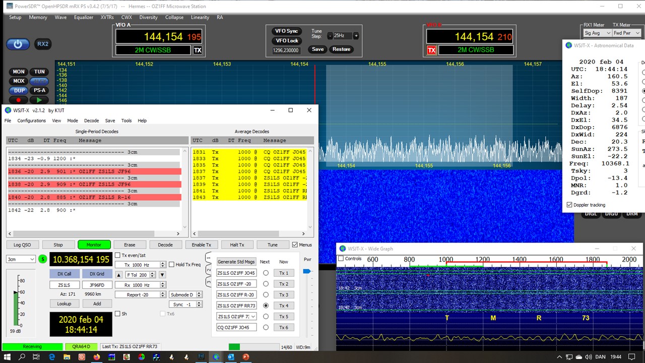Vedhæftet billede fra en QRA64D QSO på 10 GHz: